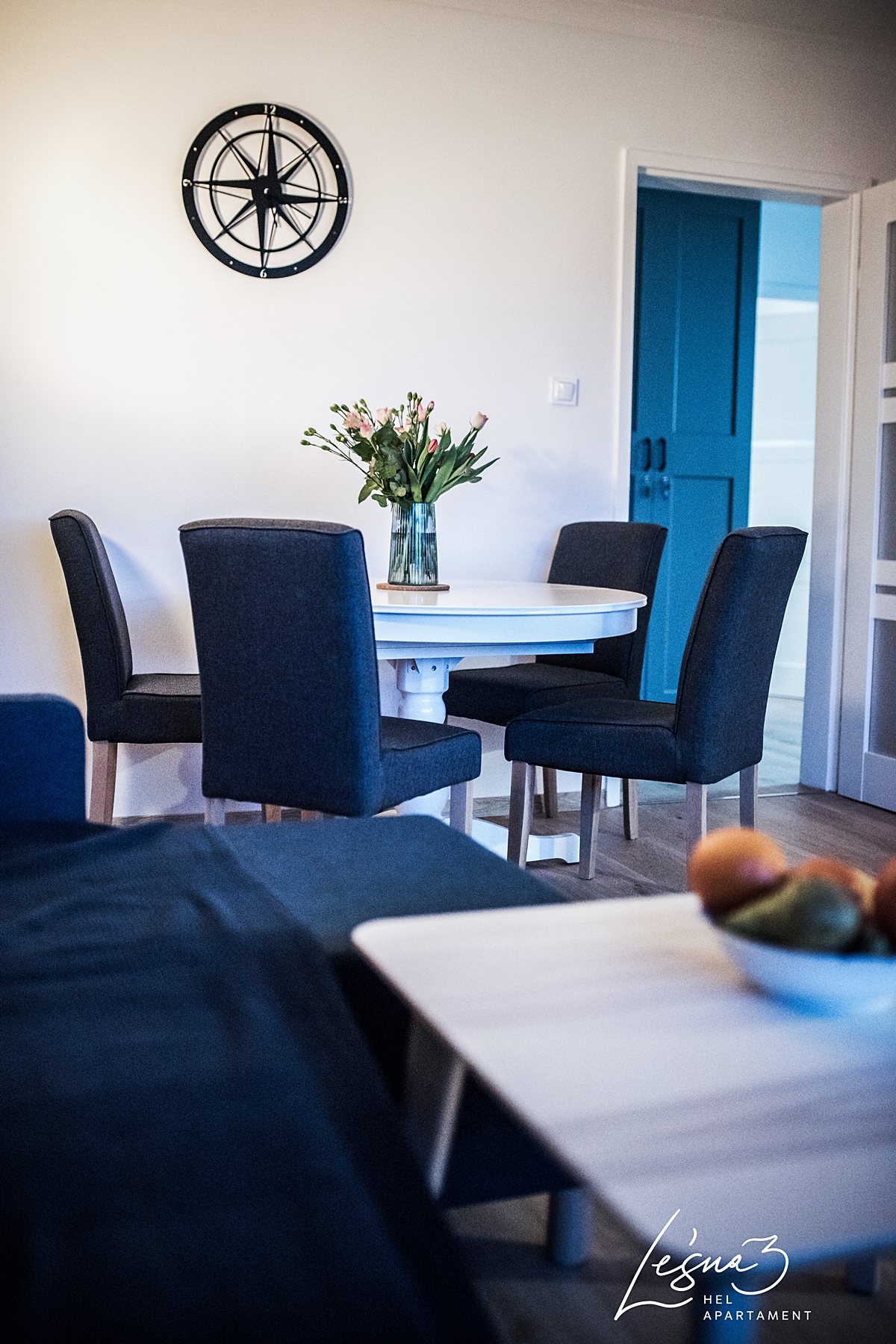 Do Państwa dyspozycji oddajemy 3 pokojowy apartament na 2 piętrze składający się z 2 sypialni, salonu, kuchni, łazienki, osobnej toalety oraz balkonu. Jedna z sypialni wyposażona jest w łóżko małżeńskie, druga natomiast składa się z 2 pojedynczych łóżek. W salonie znajduje się kanapa, która również może pełnić funkcję łóżka dla 2 osób. W mieszkaniu znajduje się Wi-fi, telewizor, zmywarka do naczyń oraz pralka. W wystroju mieszkania staraliśmy się zawrzeć elementy kojarzące się z nadmorskim klimatem i wprowadzające w wakacyjny nastrój. Mieszkanie znajduje się w bliskim sąsiedztwie cypla i portu. Wejście na plaże nr 66 prowadzące przez las oddalone jest o około 200 m. Wszystkich zainteresowanych wynajmem zapraszamy do kontaktu przez formularz na stronie bądź pod numerem telefonu 793 016 158.
